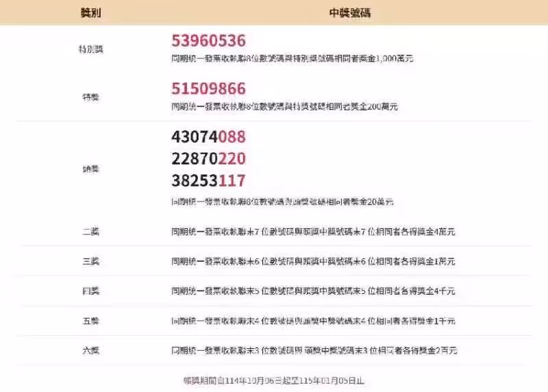 最後領獎期限為115年1月5日,剩下不到兩個禮拜,