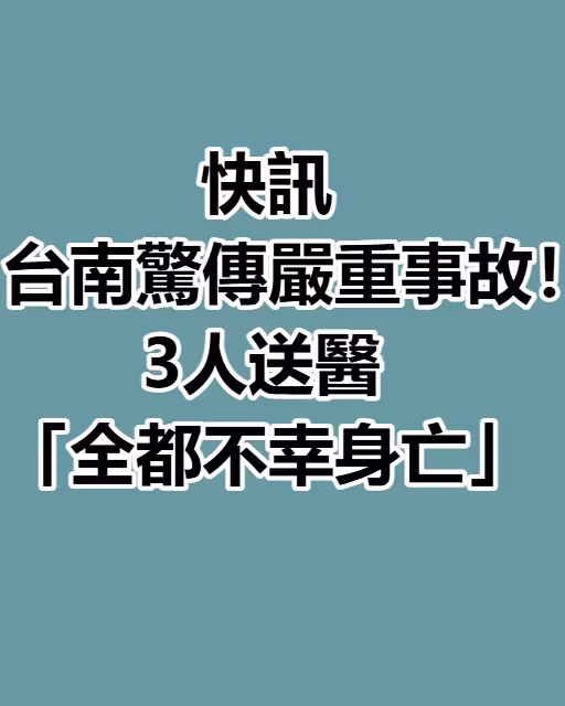 快訊/ 台南驚傳嚴重事故!3人送醫「全都不幸身亡」