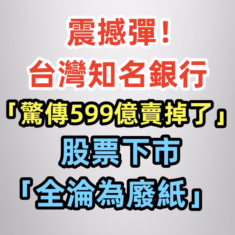 台灣知名銀行 「驚傳599億賣掉了」 股票下市 「全淪為廢紙」