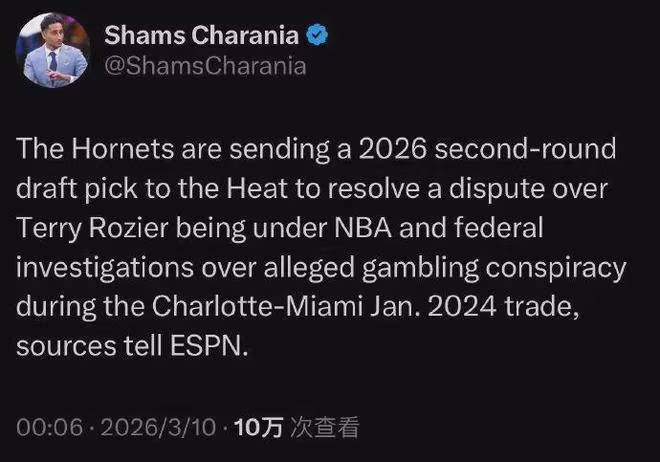 爆料王Shams:黃蜂送出一個26年次輪簽補償給熱火,以此解決24年交易出現的糾紛。