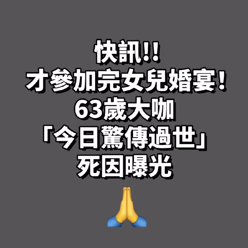 快訊/才參加完女兒婚宴!63歲大咖「今日驚傳過世」 死因曝光