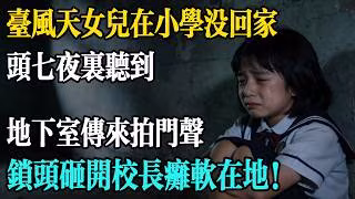 颱風天女兒在國小沒回家,老師堅持人早走了,頭七夜裡警衛聽到地下室傳來拍門聲,鎖頭一砸開大家都都癱軟