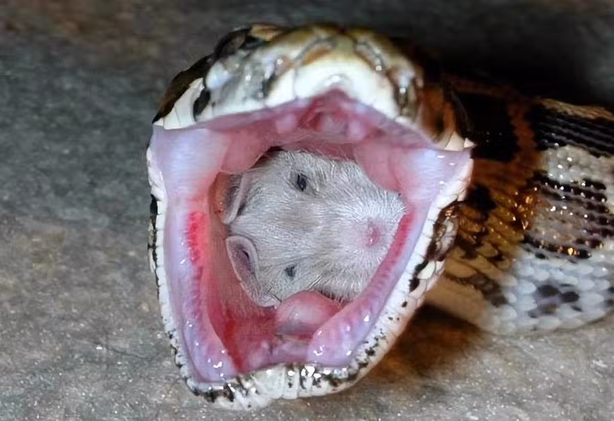20.有點嚇人的照片,蛇吞掉了一隻老鼠。蛇、猛禽、貓科動物都是老鼠的天敵。