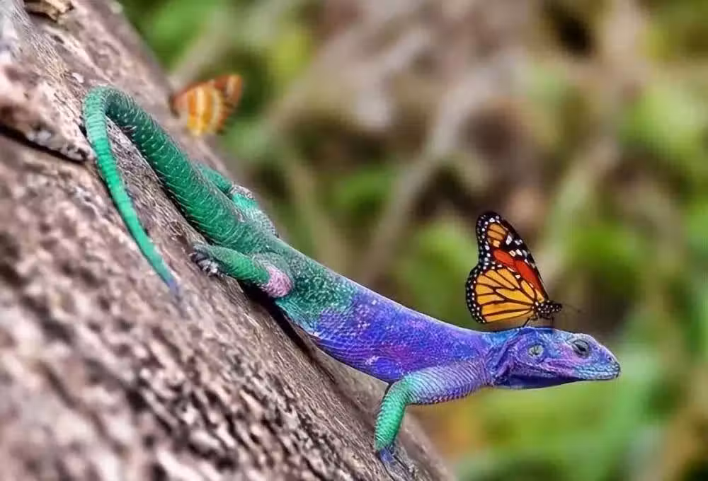 24.變色蜥與花胡蝶。多美好,不是,多滑稽的畫面啊,獵物站在獵手身上。