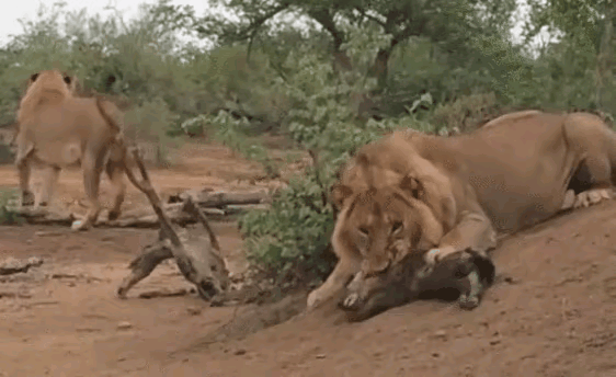 34.雄獅秒殺小鬣狗。獅子看到鬣狗不殺,就是在為自己的種群埋下禍根。鬣狗長大,對獅群禍害無窮!