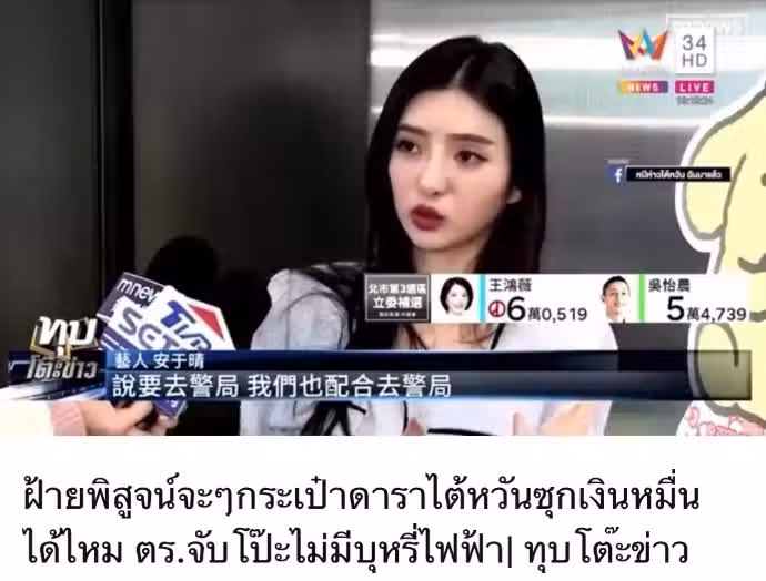 (台北31日訊)32歲女星安於晴遭泰國警方勒索2萬7000泰銖(約3494令吉)事件在國際持續發酵,在泰國前議員兼三溫暖大亨朱維(Chuvit Kamolvisit)出示泰警勒索收錢畫面,向安於晴致歉後,她接受泰國和台灣電視台採訪,並發出6個聲明還原事情經過,針對有人質疑她喝醉,安於晴反問「要如何證明我醉了?」並強調自己沒攜帶電子菸,是警察把煙放在她手上然後拍照。「我會接受採訪,不是為了要炒作、或是說警察哪裡做錯,只是因為不想被抹黑,但我也知道事情的真相是不可能還原了。」