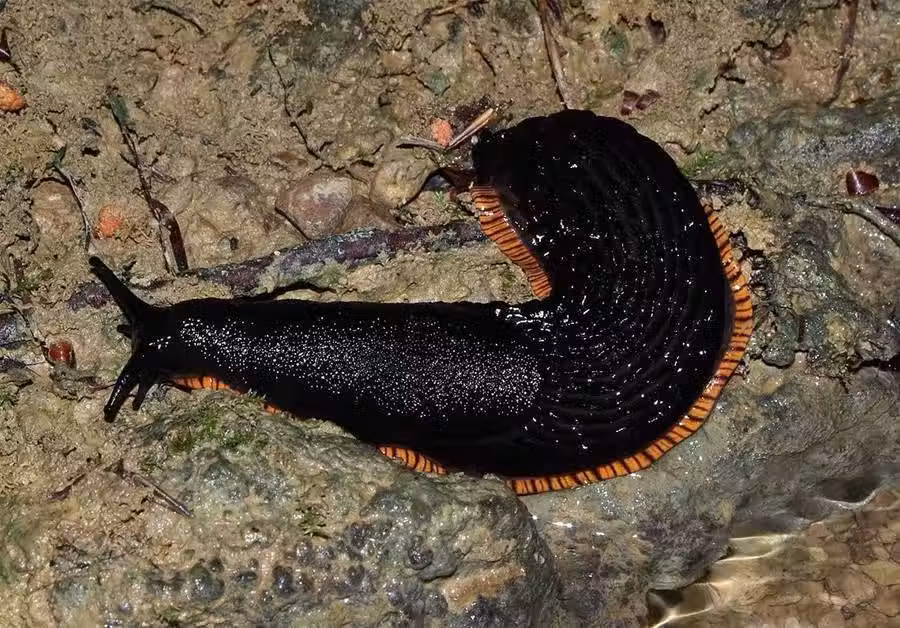 來欣賞幾張勁爆的照片——鼻涕蟲。這種鼻涕蟲非常碩大,在歐洲隨處可見,它們就是歐洲黑蛞蝓,雖然叫做黑蛞蝓,但卻什麼顏色都有。