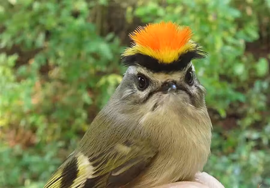 金冠戴菊,一種天生就頭頂皇冠的小鳥,可惜體型實在太小,缺乏王霸之氣。