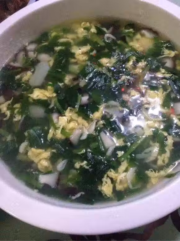 原料:雞蛋2個,香菇5朵,韭菜50g,植物油15g,鹽,味精適量,高湯500g