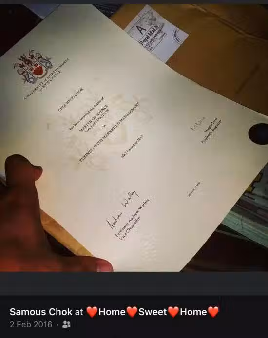 【讀書改變我的命運!】大馬「燒肉舞王」原來是學霸,曬『英國大學Master文憑』激勵人心!
