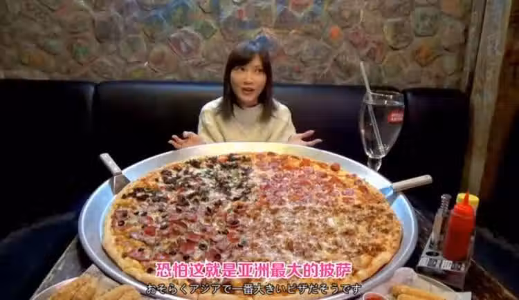 來自日本的木下,很多人都說她十分的能吃,並且在國內也是收穫了大量的粉絲,今天挑戰是一桌82寸的大披薩!