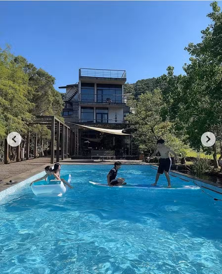 或許是因為家裡有游泳池,曹格一家人的衣服穿著都相當少,兒子一般都只穿一條泳褲,赤裸上身。