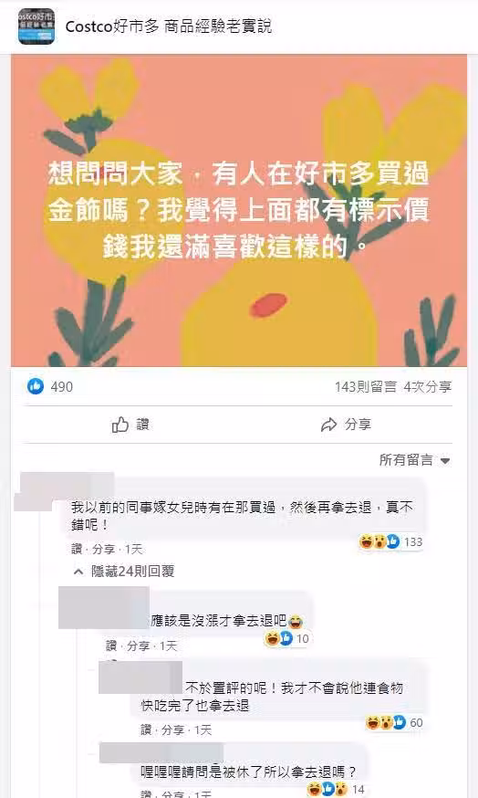 根據今日新聞報導,最近有位女網友在臉書社團《Costco好市多 商品經驗老實說》發文,表示最近逛好市多的時候發現現場的金飾的款式和價錢都不錯,但因為自己並沒有在好市多購買過金飾的經驗,因此便在文末發問:「有人在好市多買過金飾嗎」?