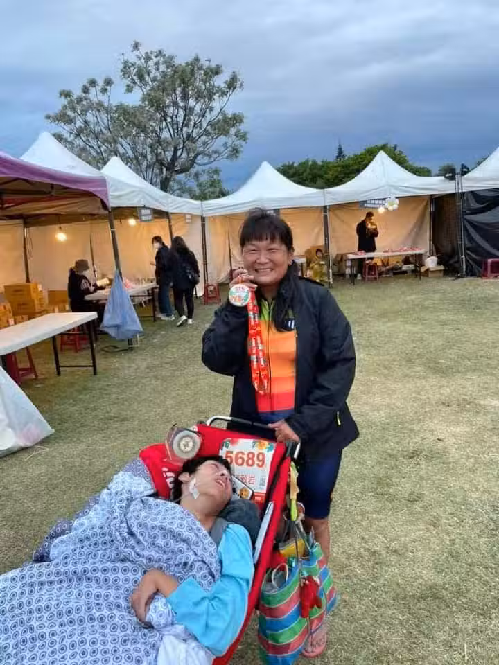 22歲生日禮物!高雄鋼鐵媽「陪腦麻兒跑三鐵」不喊累 勵志過程曝光「一路衝向終點」:願成為孩子的腳