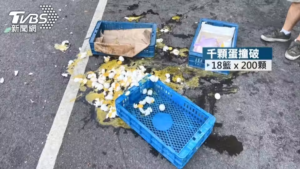 那ㄟ安餒啦!都缺蛋了 運蛋車被撞3600顆雞蛋全毀
