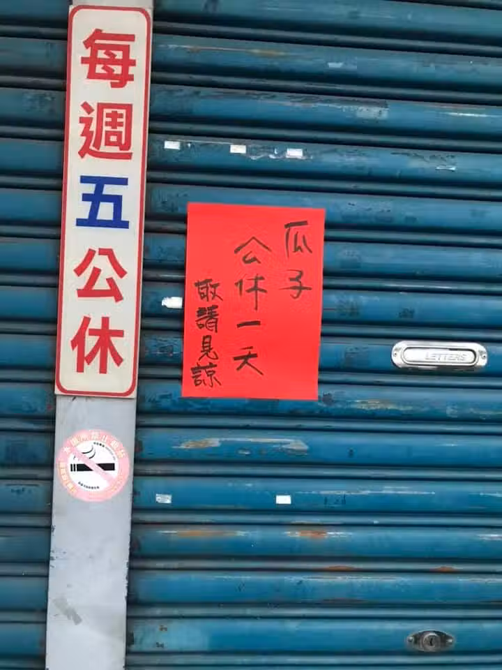 店家突然休息!鐵門貼公告「瓜子公休一天」網愣:不是賣瓜子啊 內行人笑「老闆是客家人啦」