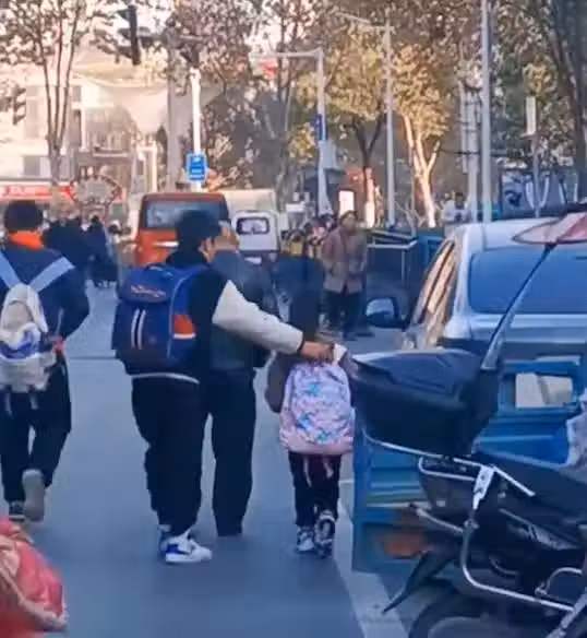 女孩獨自上學,媽媽追上時發現,女兒被高年級小哥哥一路護送,網讚:家教太好了