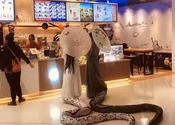 撞見青蛇白蛇買飲料!轉過身「正臉美到讓人瞬間戀愛」😍 #1樓看絕美真面目 #尾巴還會擺動
