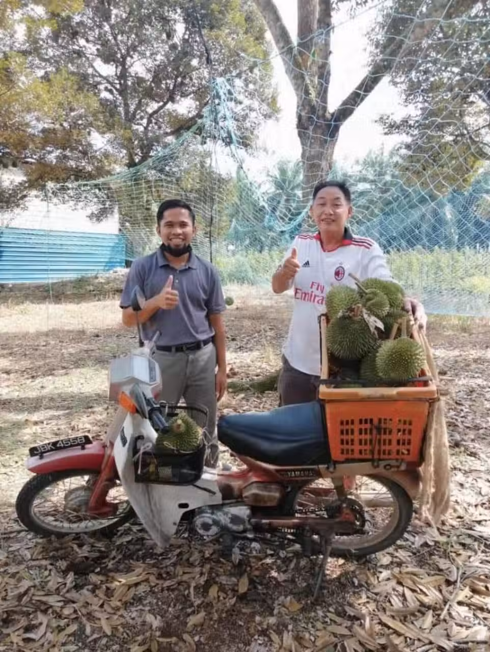 林清丹(右)感嘆,榴槤旺季卻遇到市場消費放緩,小園主血本無歸。