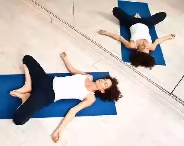 做法:仰臥,彎曲兩膝向外,腳底相對,雙腿自然打開,兩手舒服地放置,動作保持1分鐘,休息片刻,結合自身情況,做3-5組。