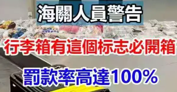 海關人員警告:行李箱有這個標誌必開箱!罰款高達100%~