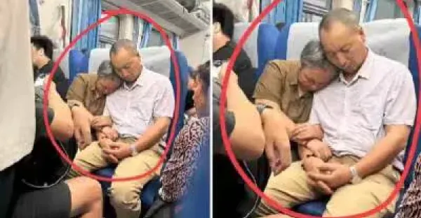 火車上偶遇一對老夫妻依偎而眠!網友卻放大照片急喊:快報警,他們身份不簡單