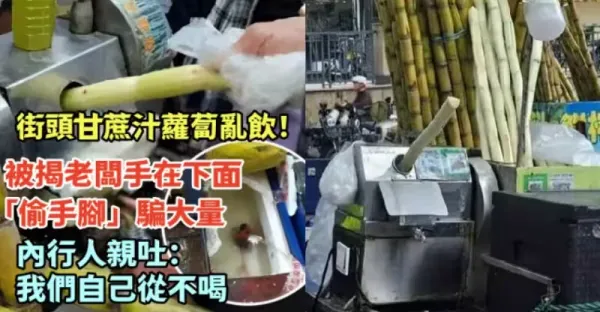 街頭甘蔗汁蘿蔔亂飲!!! 被揭老闆手在下面「偷手腳」騙大量, 內行人親吐: 我們自己從不喝