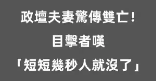 政壇夫妻驚傳雙亡!!! 目擊者嘆 「短短几秒人就沒了」