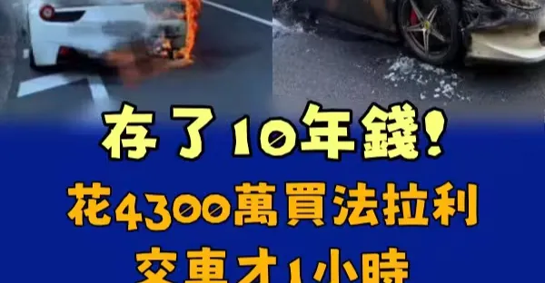 存了10年錢!花4300萬買法拉利,交車才1小時「國道燒成廢鐵」 身份被挖出「是演藝圈大咖」