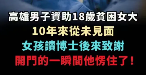 高雄男子資助18歲貧困女大, 十年來從未見面, 女孩讀博士後來致謝, 開門的一瞬間他愣住了!!!
