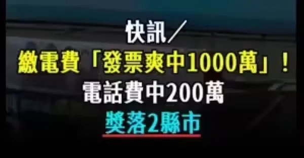 快訊 / 繳電費「發票爽中1000萬」電話費中200萬,獎落2縣市!