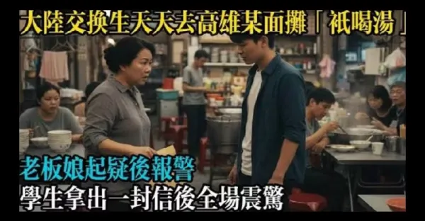 大陸交換生天天去高雄某麵攤「只喝湯」 老闆娘起疑後報警,學生拿出一封信後全場震驚