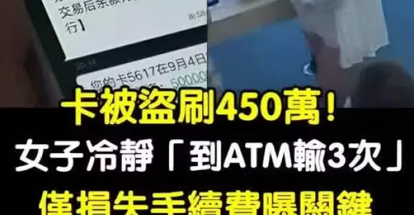 卡被盜刷450萬!女子冷靜「跑ATM輸3次」只損失手續費,她曝關鍵「電話千萬不能接」 成功挽救全追回!