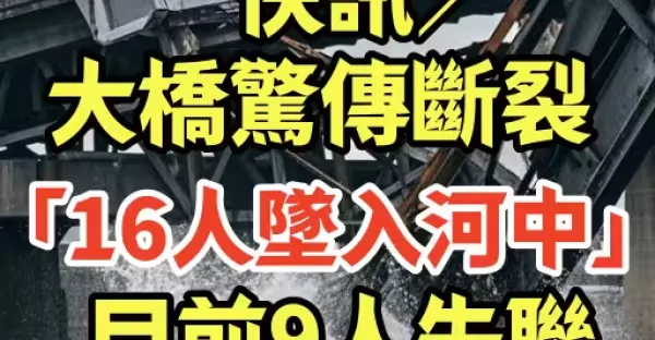 快訊/大橋驚傳斷裂「16人墜入河中」! 目前9人失聯「死亡人數曝光!」