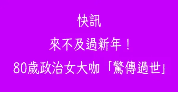 快訊/來不及過新年!!! 80歲政治女大咖「驚傳過世」