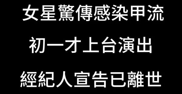 噩耗! 女星驚傳感染甲流「搶救多天無效」經紀人宣告離世 ! 初一才上台演出