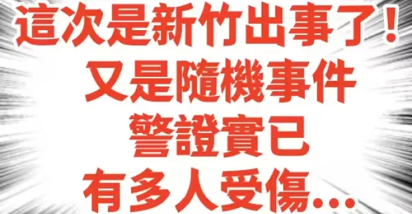 快訊 / 這次是新竹出事了!又是隨機事件,警證實已有多人受傷... 嫌犯在逃!
