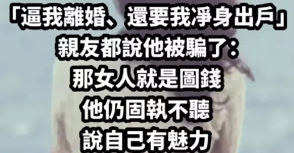 老公近60歲出軌36歲女,嫌棄我是老媽子!自稱找到真愛「逼我離婚、還要我凈身出戶」