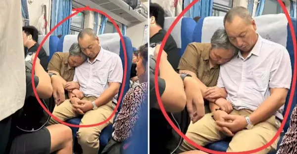 火車上偶遇一對老夫妻依偎而眠! 網友卻放大照片急喊: 快報警,他們身份不簡單!