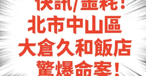 快訊/噩耗!北市大倉久和飯店出事了!