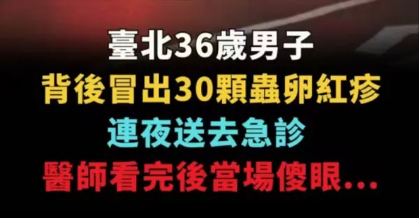 台北36歲男子背後冒出30顆蟲卵紅疹, 連夜送去急診, 醫師看完後當場傻眼