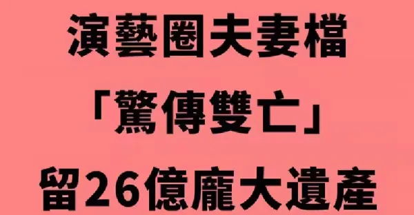 演藝圈夫妻檔「驚傳雙亡」!留26億龐大遺產「3子女為錢廝殺」