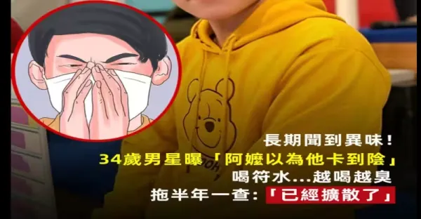 長期聞到異味!!! 34歲男星曝「阿嬤以為他卡到陰」喝符水越喝越臭,拖半年一查:「已經擴散了」