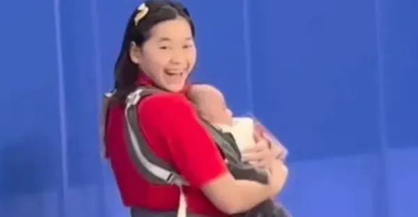 18歲全紅嬋變身「紅姨」:場邊幫謝思埸帶娃 混進廣東男團冠軍照