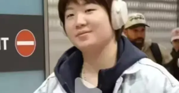 __國乒抵達蒙彼利埃,其他隊員面對鏡頭表情嚴肅,只有蒯曼露出微笑