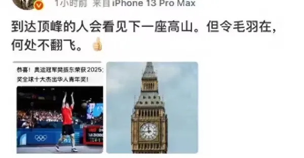 樊振東獲得大本鐘獎,吳敬平發文祝賀,他和王楚欽是同代人