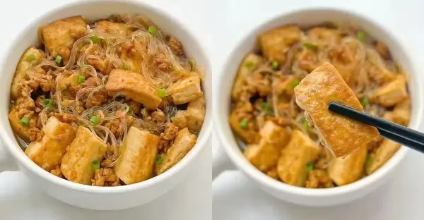 肉末粉絲豆腐,鮮香嫩滑,這湯汁拌飯絕了