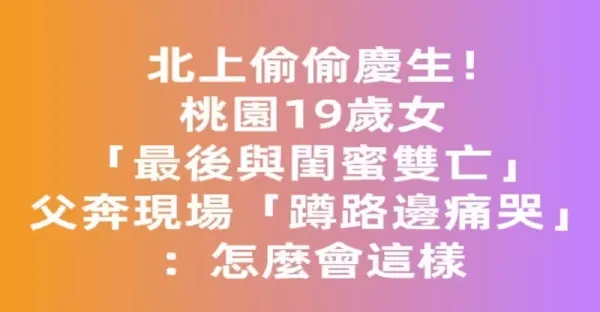 北上偷偷慶生!!! 桃園19歲女「最後與閨蜜雙亡」... 父奔現場「蹲路邊痛哭」:怎麼會這樣
