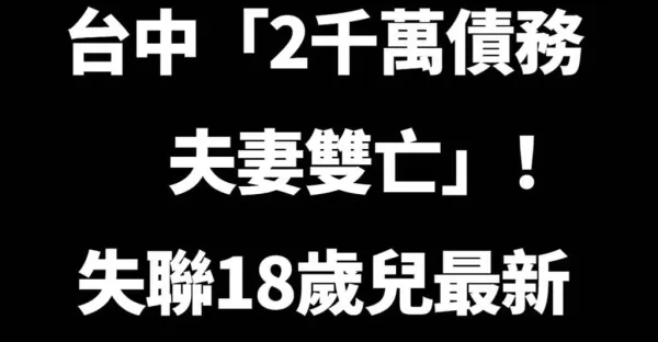 快訊/台中「2千萬債務夫妻雙亡」!失聯18歲兒最新行蹤曝光