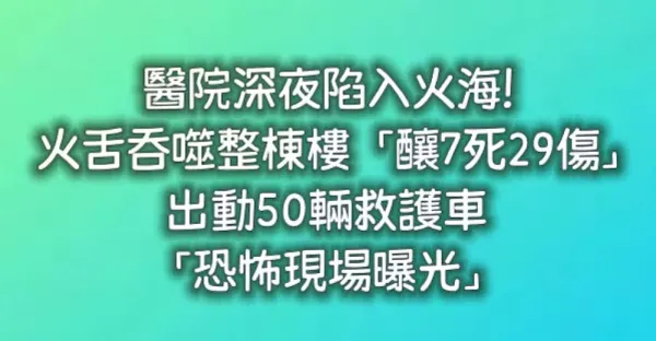 快訊/醫院深夜陷入火海!火舌吞噬整棟樓「釀7死29傷」 出動50輛救護車「恐怖現場曝光」
